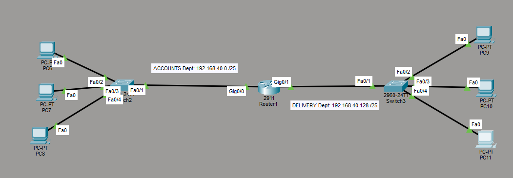 • DELIVERY Dept: 192.168.40.128 /25